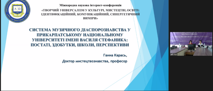 23 травня 2024 на кафедрі музичної україністики та народно-інструментального мистецтва Навчально-наукового інституту мистецтв Прикарпатського національного університету імені Василя Стефаника розпочалася Міжнародна наукова інтернет-конференція «ТВОРЧИЙ УНІВЕРСАЛІЗМ У КУЛЬТУРІ, МИСТЕЦТВІ, ОСВІТІ: ІДЕНТИФІКАЦІЙНИЙ, КОМУНІКАЦІЙНИЙ, СИНЕРГЕТИЧНИЙ ВИМІРИ».