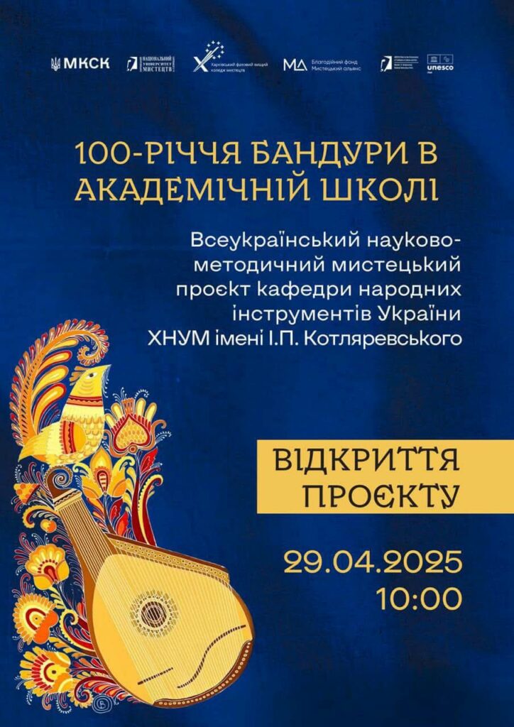 29 квітня 2025 року в рамках Всеукраїнського науково-методичного мистецького проєкту кафедри народних інструментів України ХНУМ імені П.Котляревського з нагоди відзначення 100-річчя бандури в академічній школі відбувся науковий дискурс “Від витоків до сьогодення: традиції та інновації в бандурному мистецтві”. До заходу Читати далі