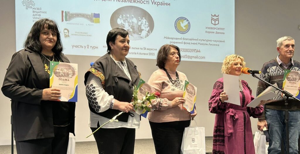 14 жовтня 2025 року викладачі Навчально-наукового інституту мистецтв Карпатського національного університету імені Василя Стефаника професори Ганна Карась, Віолетта Дутчак (завідувачка кафедри музичної україністики та народно-інструментального мистецтва), доценти Ольга Молодій, Ірина Новосядла як члени журі Другого міжнародного фестивалю-конкурсу «Мистецькі промені України» взяли участь у нагородженні переможців і гала-концерті. Серед переможців студенти нашого інституту, зокрема Іван Гуляк – лауреат 1 місця (клас доц. Наталії Федорняк)! Вітаємо всіх!
