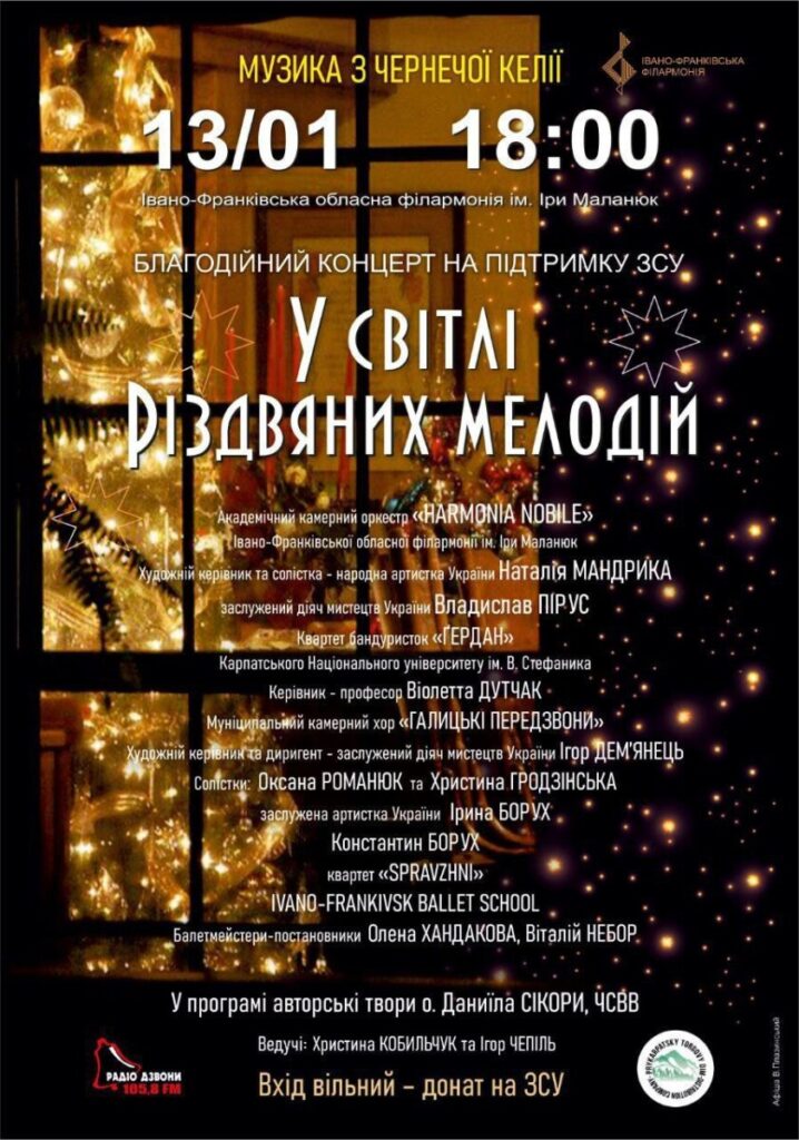 13 січня в Івано-Франківській обласній філармонії імені Іри Маланюк відбувся благодійний концерт «У світлі різдвяних мелодій» на підтримку ЗСУ. У програмі звучали авторські твори о. Даниїла Сікори, ЧСВВ. Квартет бандуристок “Ґердан” (керівниця Віолетта Дутчак) був серед учасників поряд із камерним оркестром «Harmonia Nobile», хором «Галицькі передзвони» та інших митців.