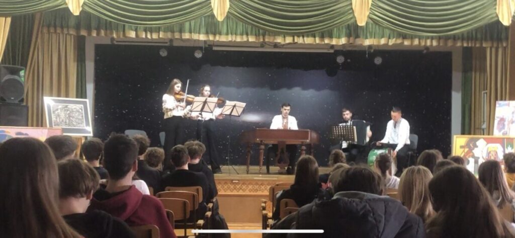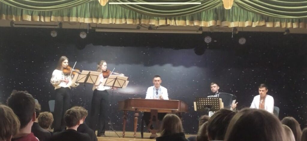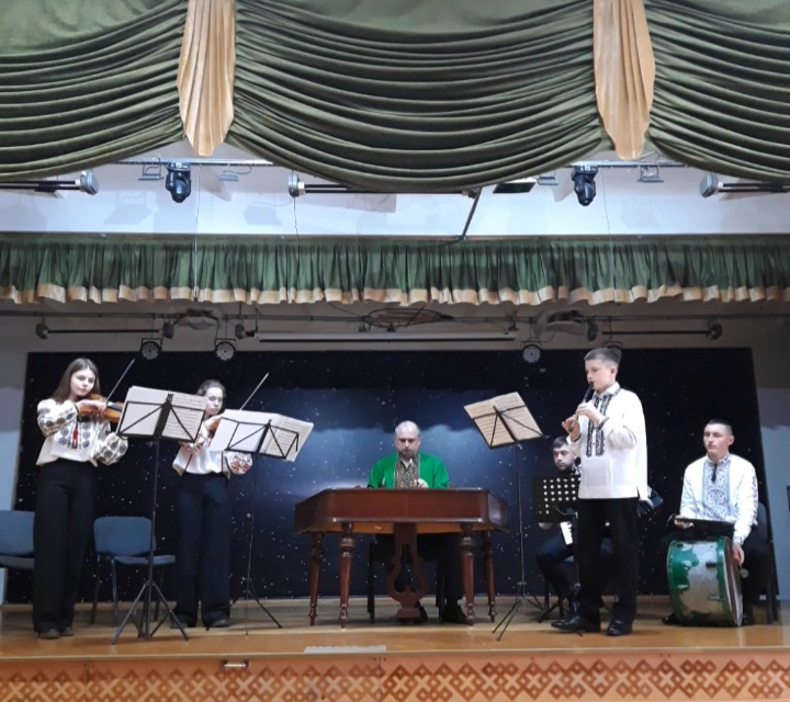 Особливої виразності події надав ведучий концерту — Богдан Васюта, який майстерно поєднав художнє слово з музикою, створивши цілісну атмосферу натхнення та емоційної єдності. Ансамбль виступив у складі: Дарії Михайлюк, Софії Литовчук – скрипки, Максима Ватамана – акордеон, Назара Фуштея – цимбали та ударні, Назарія Дідика – цимбали та ударні, Арсенія Гулянича – сопілка та керівника колективу, доц. Юрія Гулянича – цимбали.