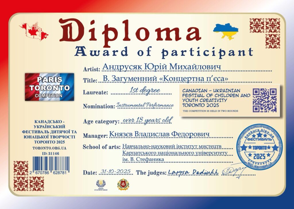 Канадсько-український фестиваль дитячої та юнацької творчості 31.10.2025 м. Торонто (Канада)