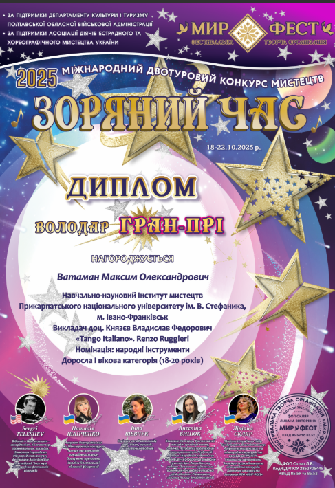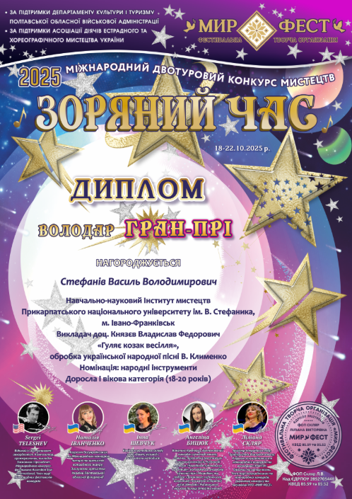 Міжнародний двотуровий конкурси мистецтв «Зоряний час» 20-22. 10 2025 м. Полтава